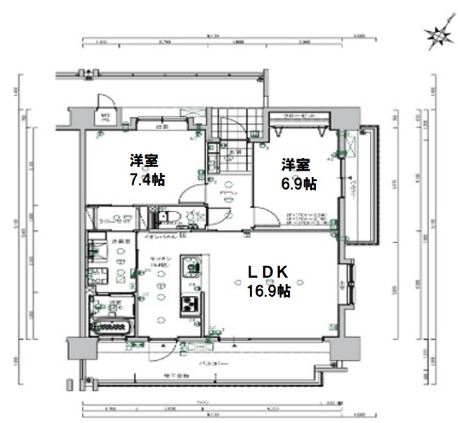 洋7.4帖、6.9帖、LDK 16.9帖